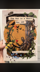 A labyrinth of nurture includes many animals and insects that are used in a rich and busy trail with the atmosphere enhanced with dramatic bursts of weather from the four UK seasons. From seed to flower, tree and herb, the narrative takes the reader through unseen detail to feel the growth on the page. The reader can also appreciate the poet’s love for nature in the busy urban spaces lived. For example in the poem ‘Another Person’ set on a train full of people, a certain distance is created with ‘From the midst of human beings I recognise another person’. Or in the poem ‘Parting at the Shard’ which juxtaposes the high rise shard with other gentle but busy poems about nature. In this poem human nature and sentiment are brought in. There is also a busy poem at a train station but we are quickly brought back to the bee’s pollen and the snail. Even cigarette smoke is likened to a gardender’s back! And then to the potting shed. There is a feeling of growth throughout ‘The Sun is a Heart Far Off’. In the poem ‘Little Sycamores’ there is no containing the evolution of nature! The love of nature of the poet is further understood with poems on climate change.